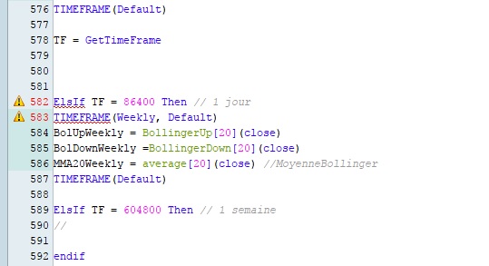 Avez-vous essayé de contourner le pb en “pré-calculant” toutes les variables dépendant des timeframe en dehors des tests if.. elseif..endif. Si le problème persiste alors il serait ailleurs?… yj