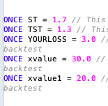 The snippet you showed with the ONCE declarations in there, is the one which would NOT work, right ? (I say this can’t work). But this is not in the script I downloaded. So *not* having that in there would be the way do t it, but something just does not want to cooperate with the backtesting.