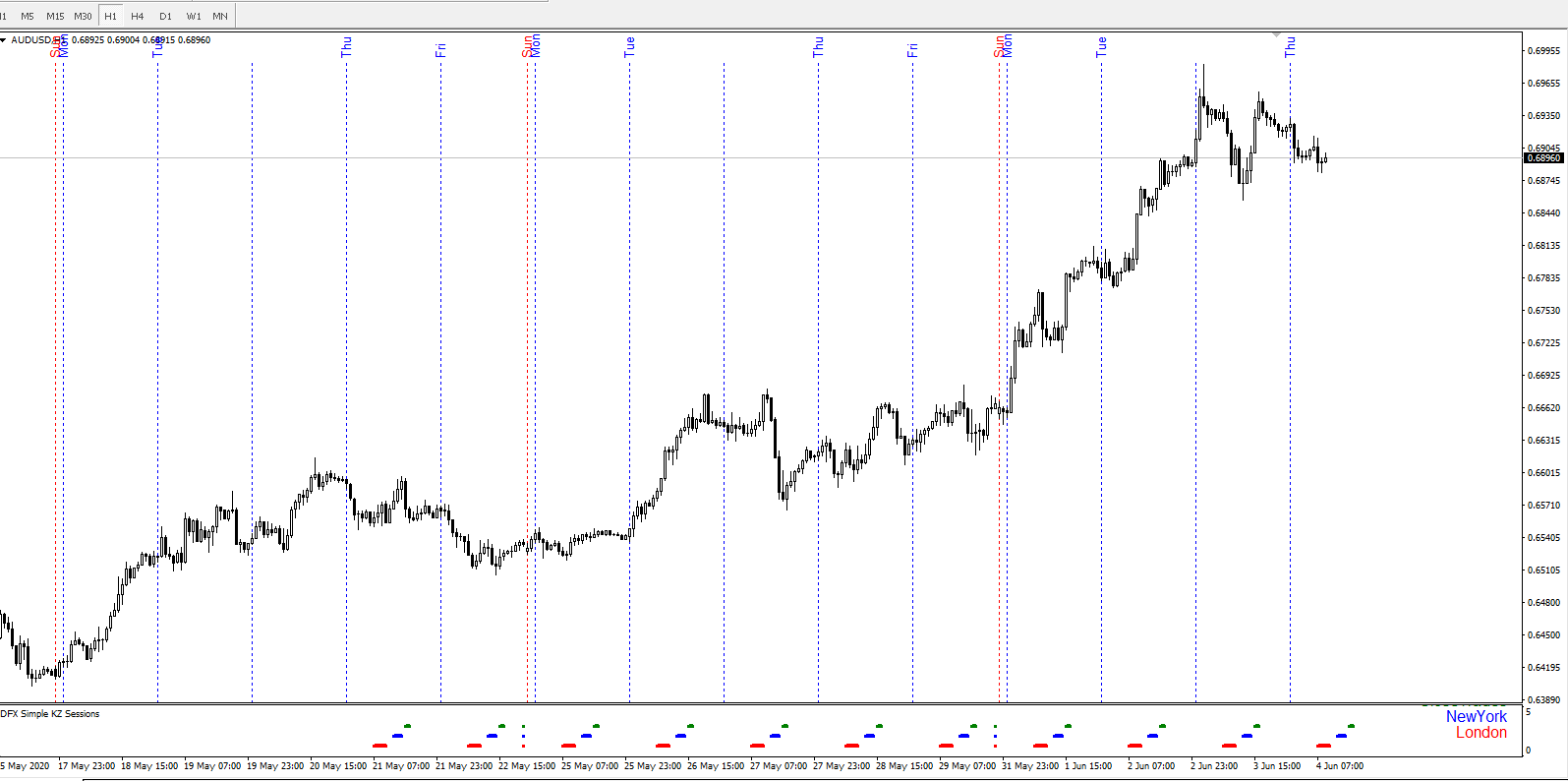 kill zone session ( indicateur de debut de session de londres / new york et london close possibilité de modifier l’heure