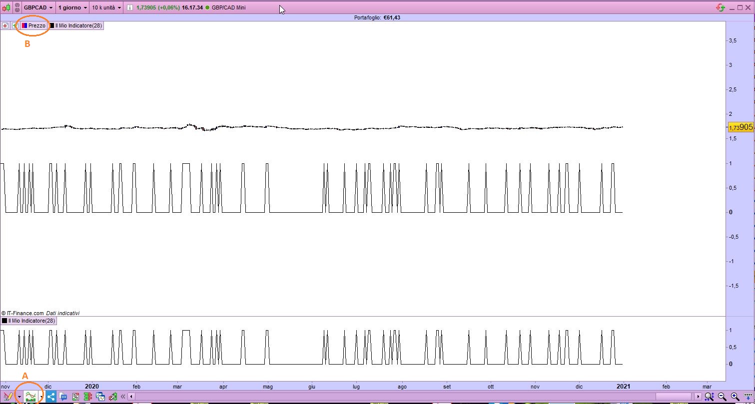 - UNTER dem Preis (wie Macd, Rsi usw.) durch Klicken auf A.
