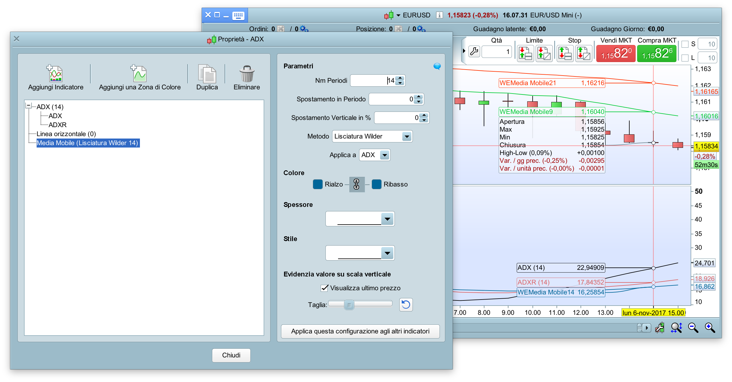 Grazie Nicolas per la risposta, non cerco di aggiungere una media sull’indicatore ADX, ma di poter applicare una lisciatura in più alla possibilità di indicare il numero di periodi per ADX.