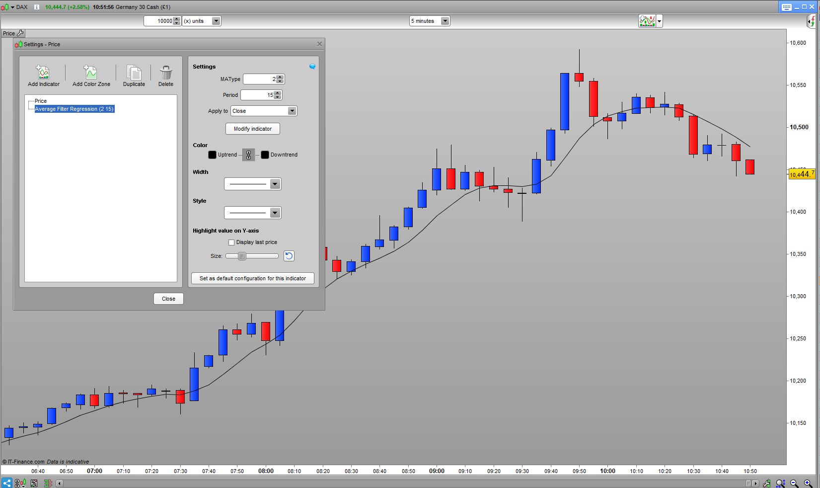 Allora io scarico il file, importo il file Average-Filter-Regression.itf ,vado in alto a sinistra clicco sulla chiave inglese, mi apre la finestra Proprietà-Prezzo, clicco aggiungi indicatore mi apre una lista dove scelgo l’indicatore, ecco qui trovo solo nella voce I MIEI INDICATORI AVERAGE FILTER REGRESSION , non trovo l’indicatore ALMA ( Arnaud- Legoux- Moving-Average) cosa devo fare? grazie