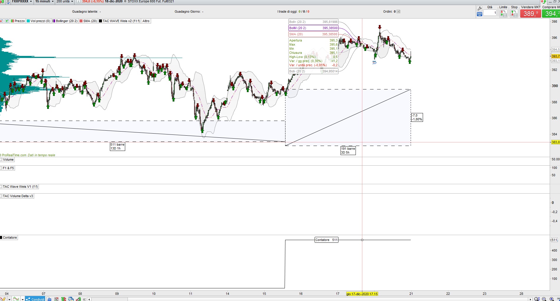 (es low = valore minimo di prezzo tra le candele comprese tra 17/12/2020 16:00 e 18/12/2020 16:00)
