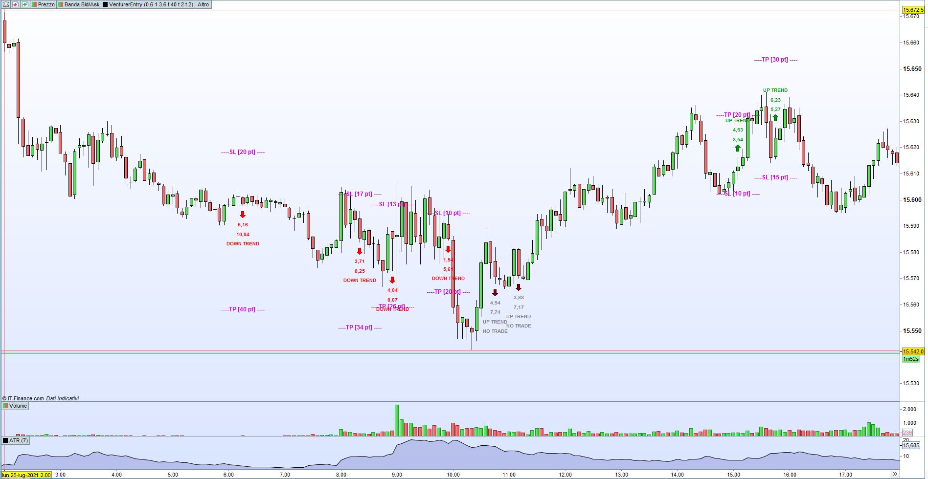 Sul grafico saranno visualizzate le frecce per Long o Short e i relativi valori