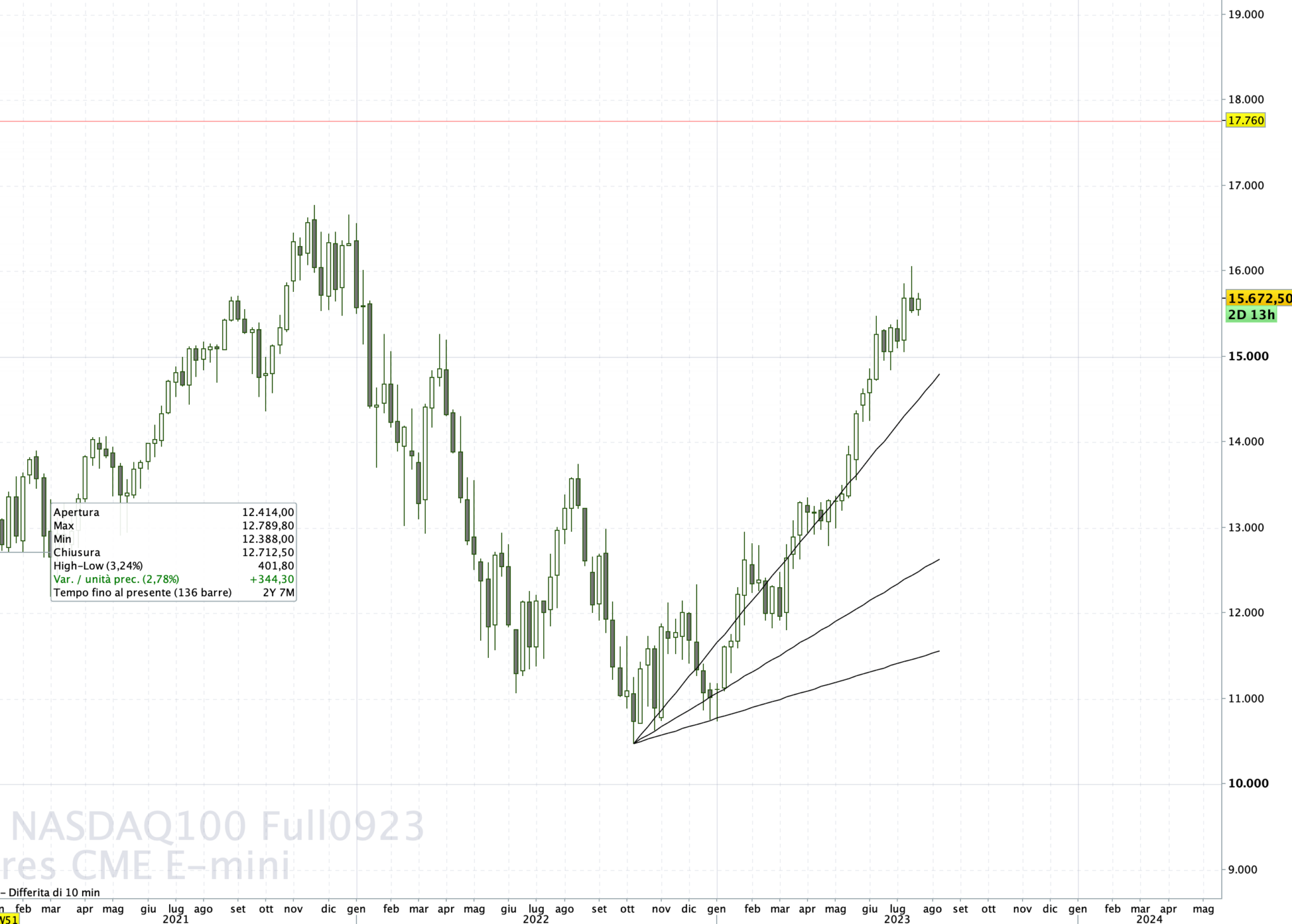 - prendendo l’esempio di prima è possibile cambiare il TF di visualizzazione, ad esempio visualizzando il settimanale ma, mantenendo la visualizzazione e la stessa “inclinazione” che avrei visualizzandolo nel TF daily?