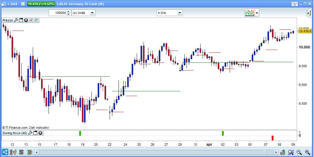 per esempio, prendiamo il dax, vorrei che sul grafico uscissero i livelli di prezzo che abbiano avuto i livelli di volume + alti dell’ultima settimana o anche nella giornata sottoforma di rette orizzontali