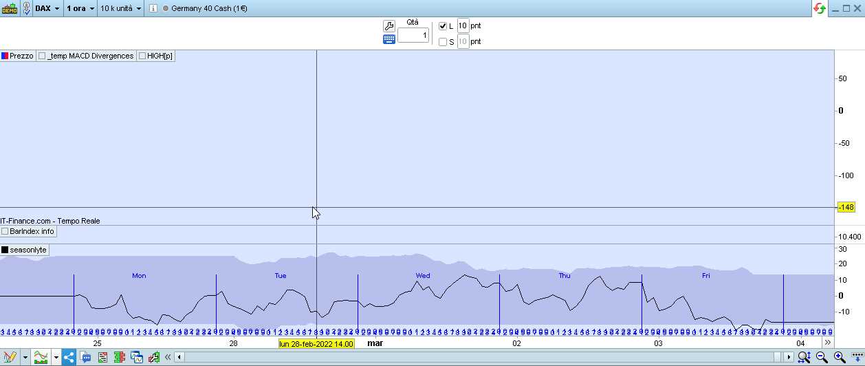 Io l’ho messo sul grafico del DAX, 1 ora, 10K unità. Sembra funzioni. E’ un vecchio portatile con colori scadenti, ma qualcosa si vede (anche se non ho verificato cosa stampi).