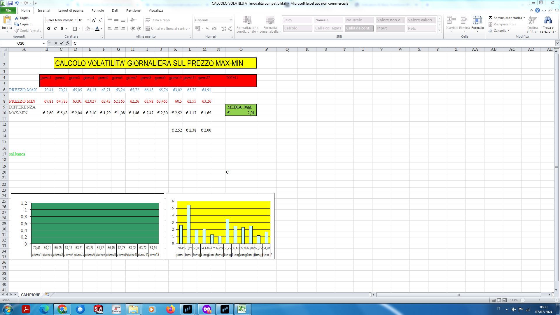 Si tratta di calcolare la variazione di prezzo giornaliera tra Max e Min