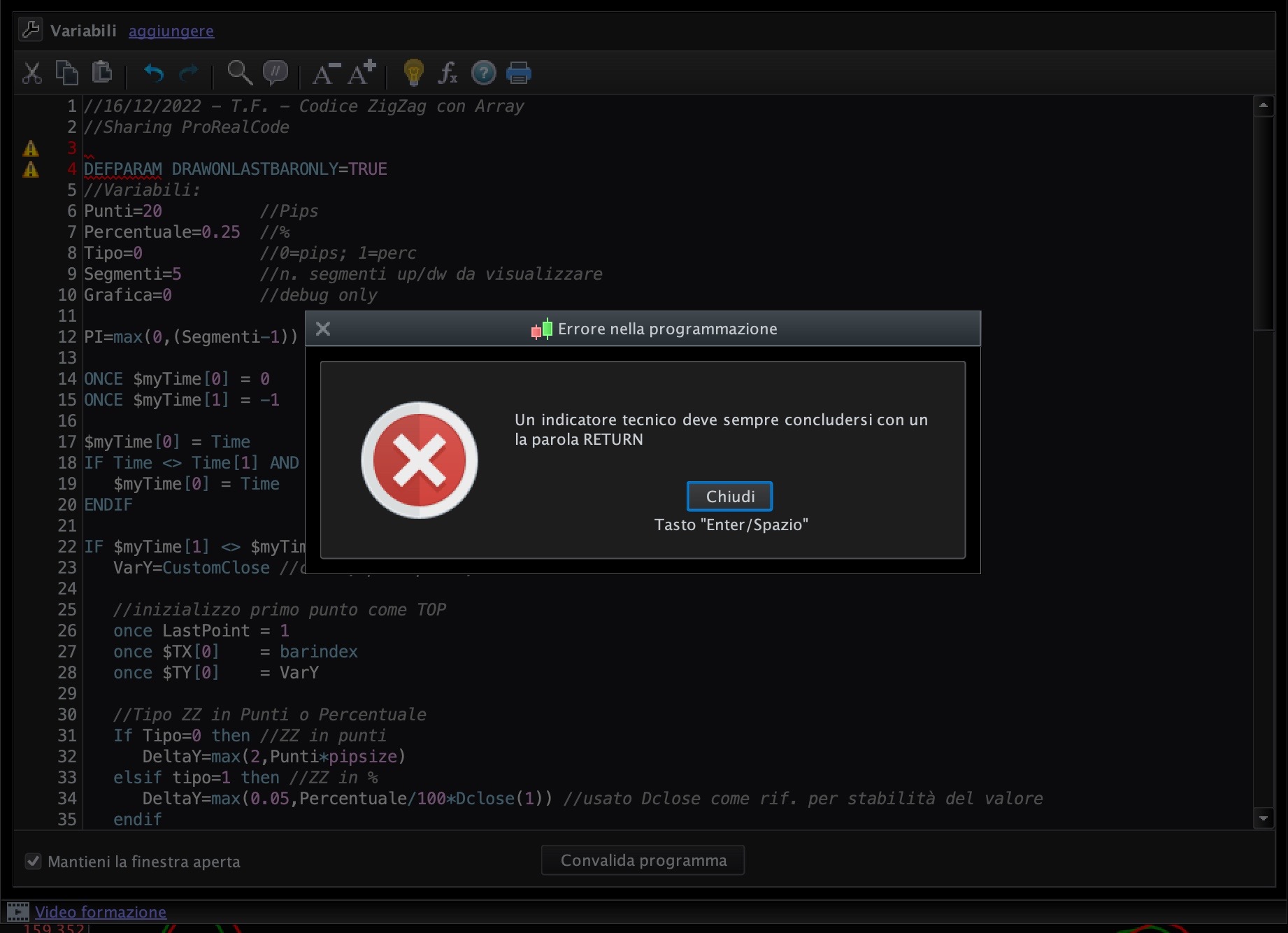 Indicatore ZigZag – Prova codice