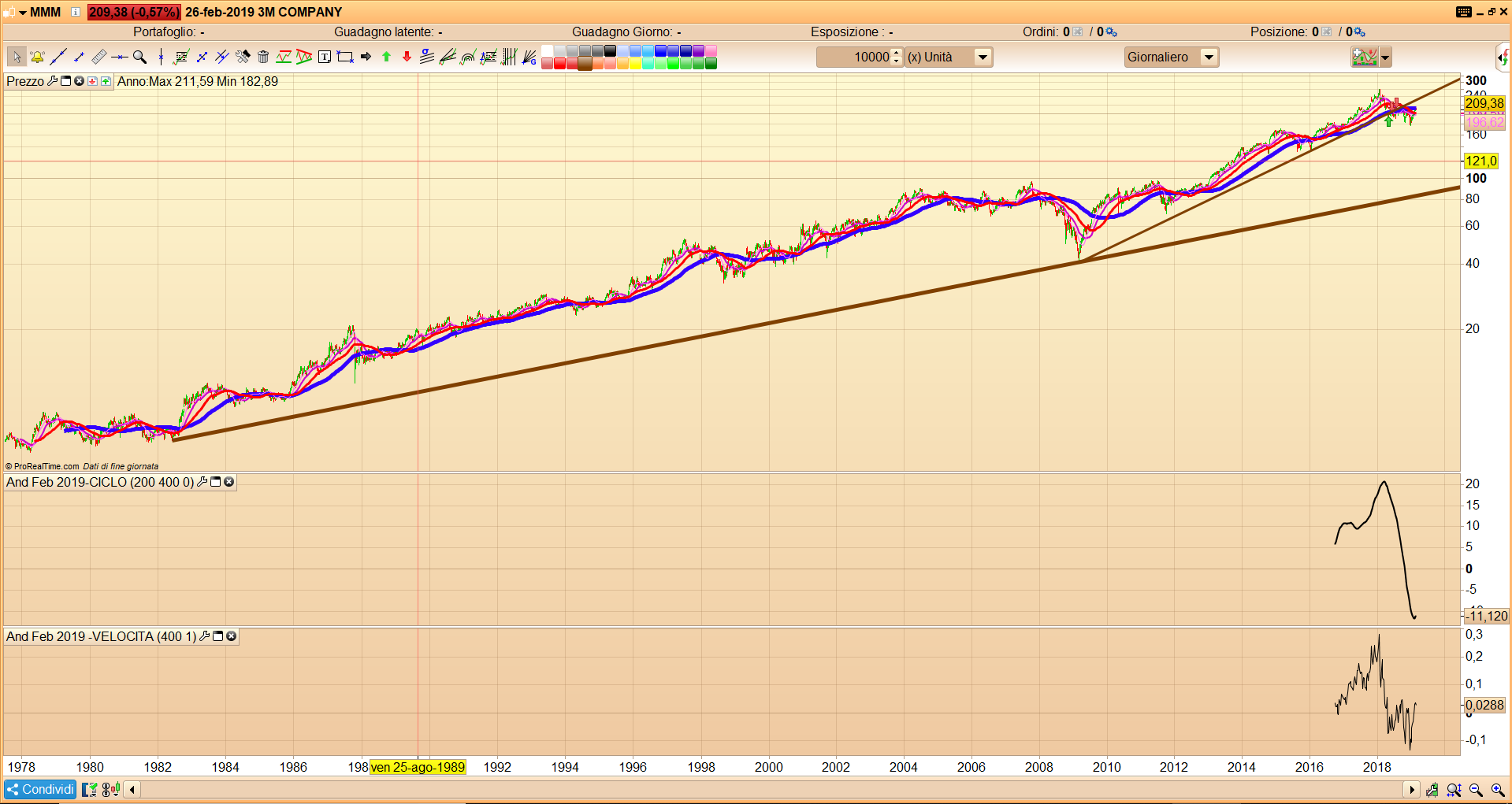 per questo titolo preso come esempio, sul grafico del prezzo ho inserito due MM, a 220 e 440 periodi. Tali MM, come puoi vedere dall’immagine allegata, sono visibili circa dal 1979.……. come mai invece i 2 indicatore nuovi…settati a 220 440…sono visibili invece soltanto da novembre 2016…??