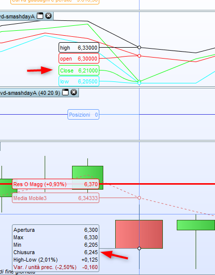 Grazie mille, ho provato sia “graph close”, sia “graph close[0]” il risultato è identico, ed errato, in entrambi i casi. Mentre corrisponde il valore di “graph open”, “graph high” e “graph low”. Come mi hai fatto notare per quello che ho potuto vedere capita solo con le azioni dell’indice italiano. Ho aperto una chiamata su prorealtime ma non so se mi risponderanno, visto che la mia è la versione gratuita.