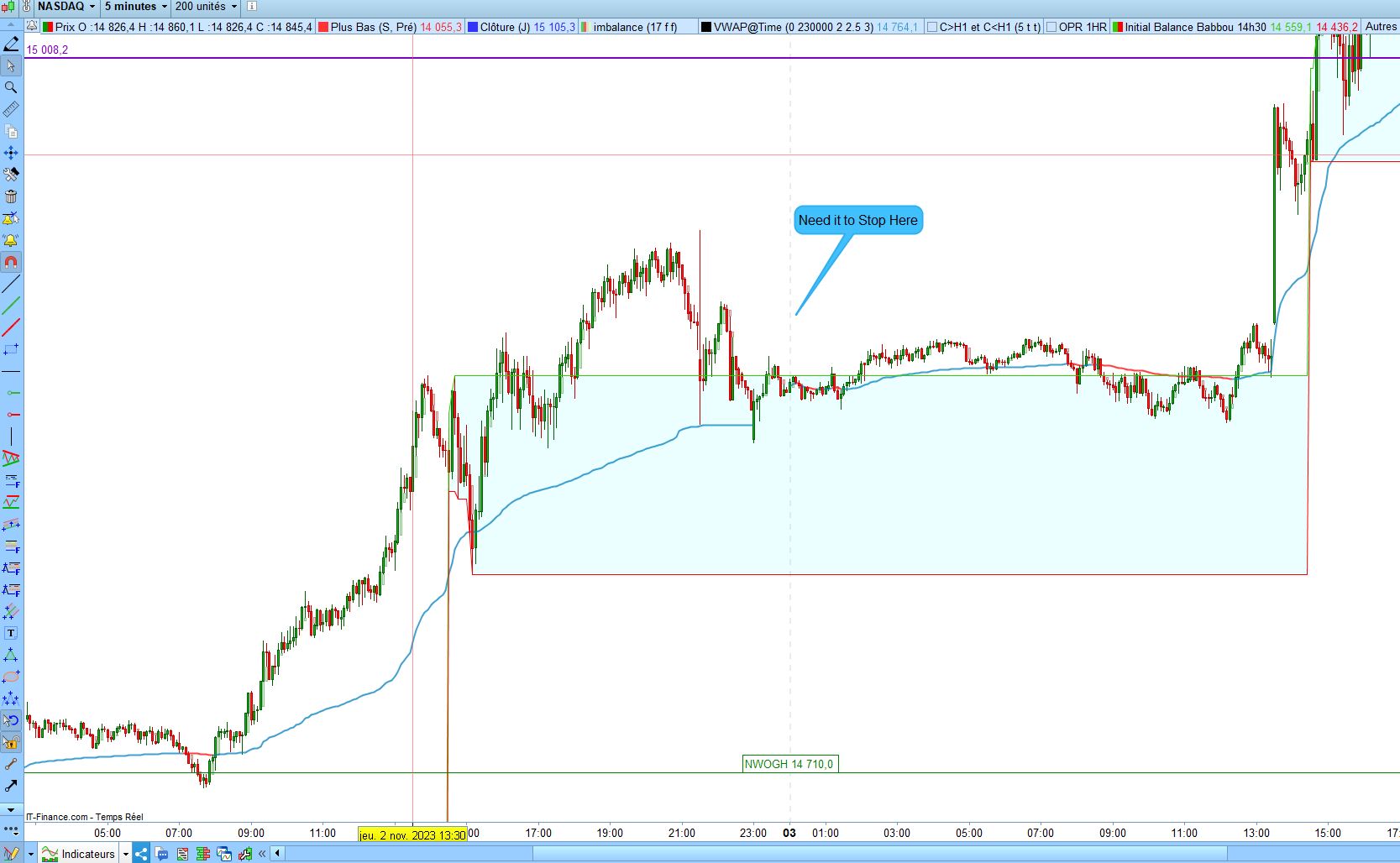 IF OpenTime = StartTime OR ((OpenTime > StartTime) AND (OpenTime < OpenTime[1])) THEN