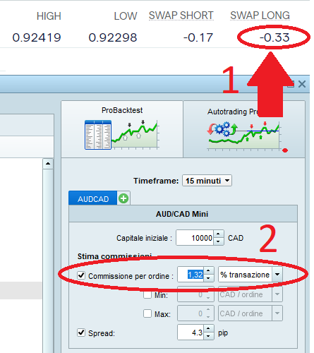 - lo inserisco nella casella del probacktest: commissioni per trade in % (vedi foto)