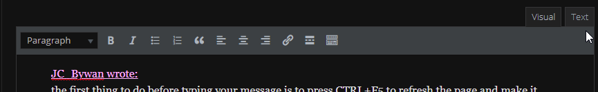 When starting a post, in case you don’t see the « insert PRT code » button initially, the first thing to do before typing your message is to press CTRL+F5 to refresh the page and make it appear.