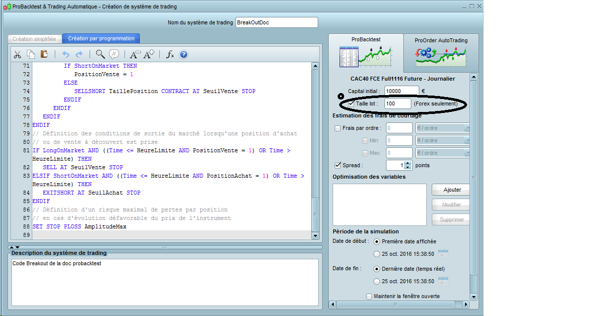 Dans le guide de programmation “ProBacktest et Proorder” il est donné le code d’un système de Breakout ( “Breakout ProOrder” ) qui est censé être backtesté sur un mini-contrat CFD France 40. Or, je n’ai qu’une version de démo pour l’instant et je n’ai pas accès à ces contrats dans ma liste d’instrument ( du moins c’est mon impression…)