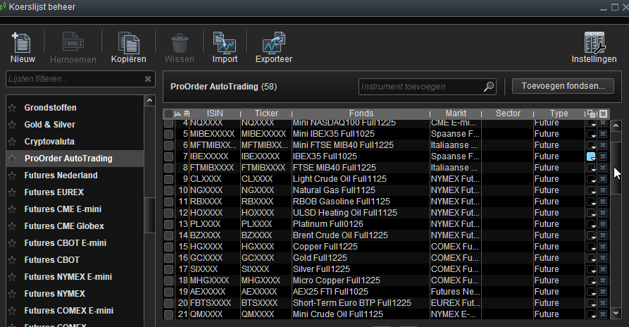 If you create a new List and select and via the wrench you see in the top there select ProOrder AutoTrading, you will see what is available for AutoTrading through IB.