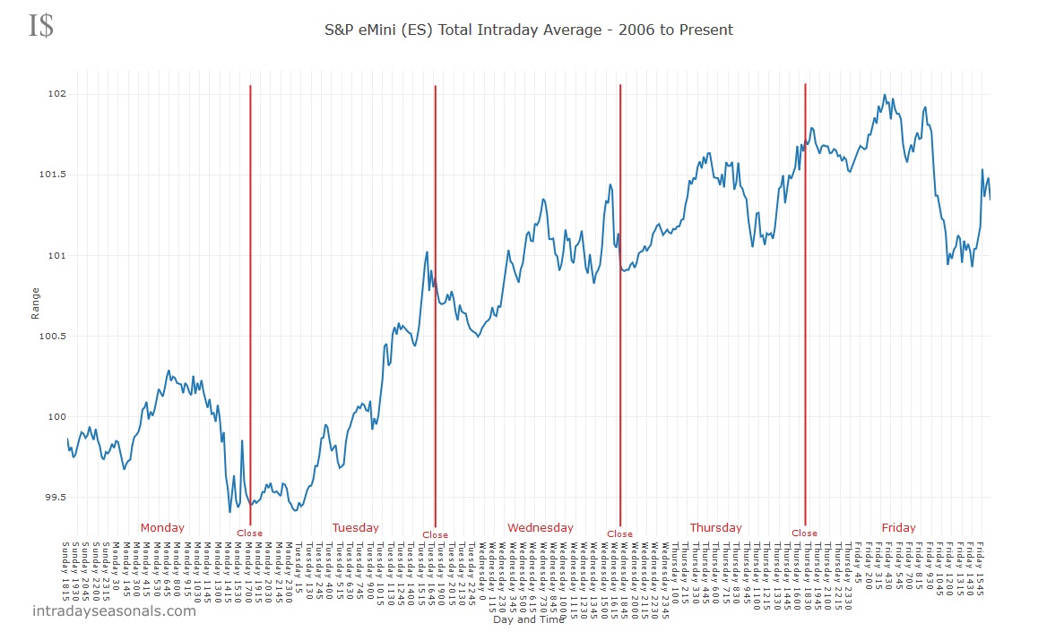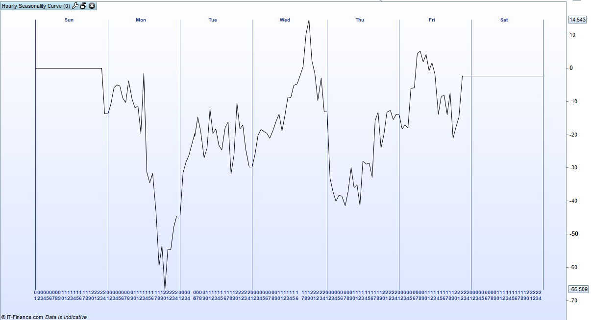 I want to make an indicator that says hourly intraday seasonality, throughout the week. Like Larry Williams’, I attach the image.