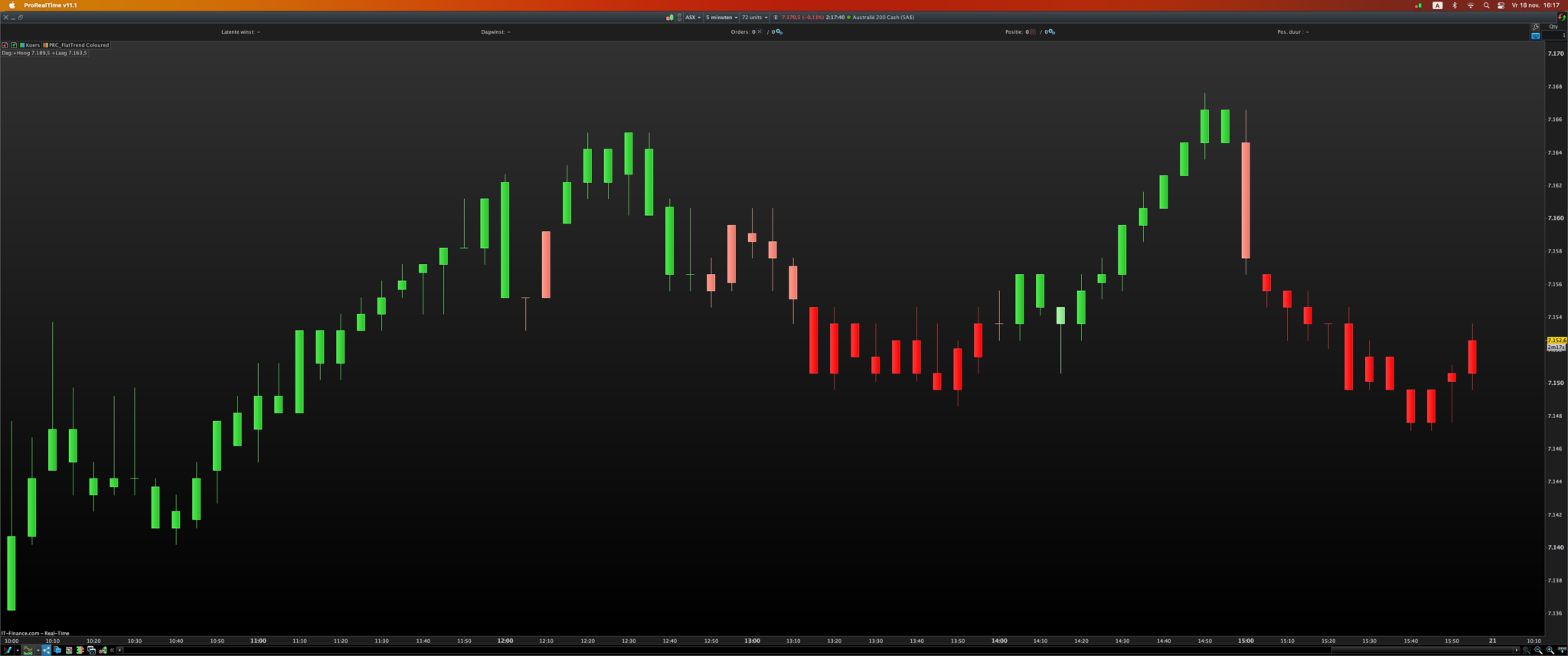 - The chart immediately snaps to a view showing the opening hours (10am – 4pm) on the 5m chart (i.e. the screen will only show 72 5min candles).