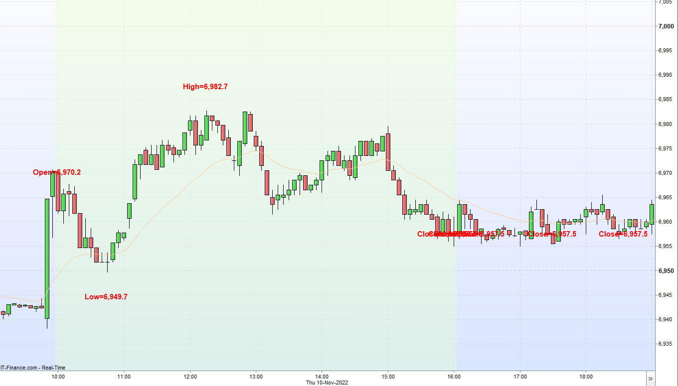 - Then of those 72 candles on screen, it will show the Open, Close, High and Low for the 10am-4pm session only (not showing premarket data). Perhaps right in the top left corner for convenience.