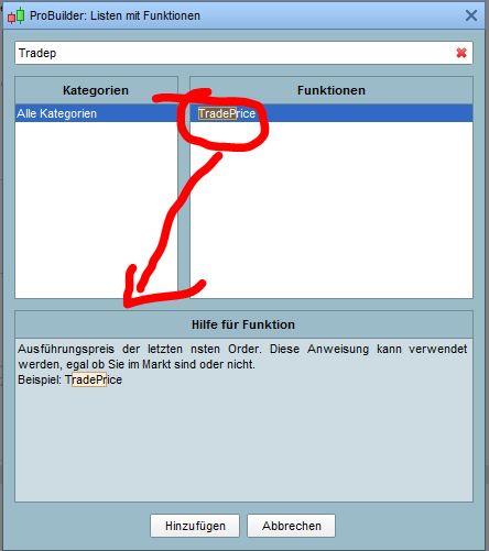 Im Handelssystem würde ich auf [fx] klicken. (siehe Bild: Liste mit Funktionen)