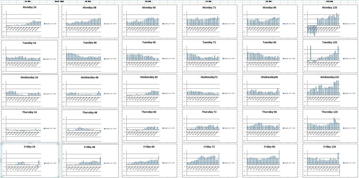 It definitely seems to show the benefit of longer holding over short term profit taking and also highlights times of the week when it is clearly a good time to buy and good time not to.