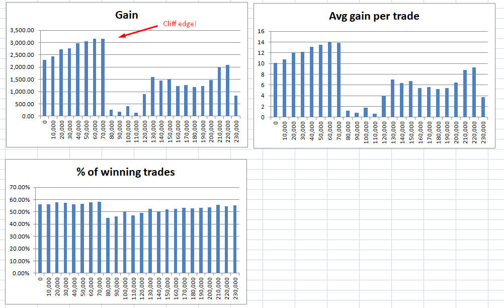 Which shows your trade standing near a cliff edge. Just a handful of minutes in the wrong direction and your strategy is suddenly rubbish.