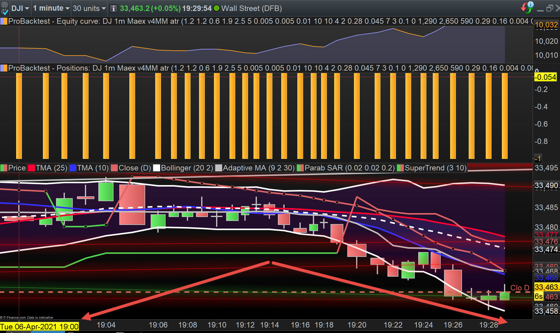 One of the main reasons I sometimes use a short period of say 30 mins for BT’s is to shorten the BT duty cycle time if I need to use a wider range of variables – or when adding more variables. When using the 1-min bars time scale, its no good if each BT takes more than 30 seconds, because by the time I am ready to trigger a trade, the price sometimes has moved quite far. Yes, this method is for manual trading, but that brings me to another subject that I would like to discuss with you soon if you don’t mind – and that is how to convert the system to AUTO trading…….. that would be the ultimate. If there is any way to get this moving-forward fixed period coded, it could also possibly be used in an auto trading code.