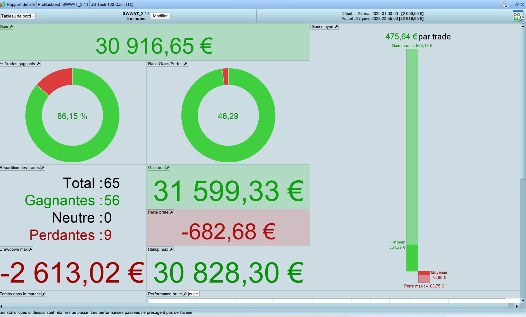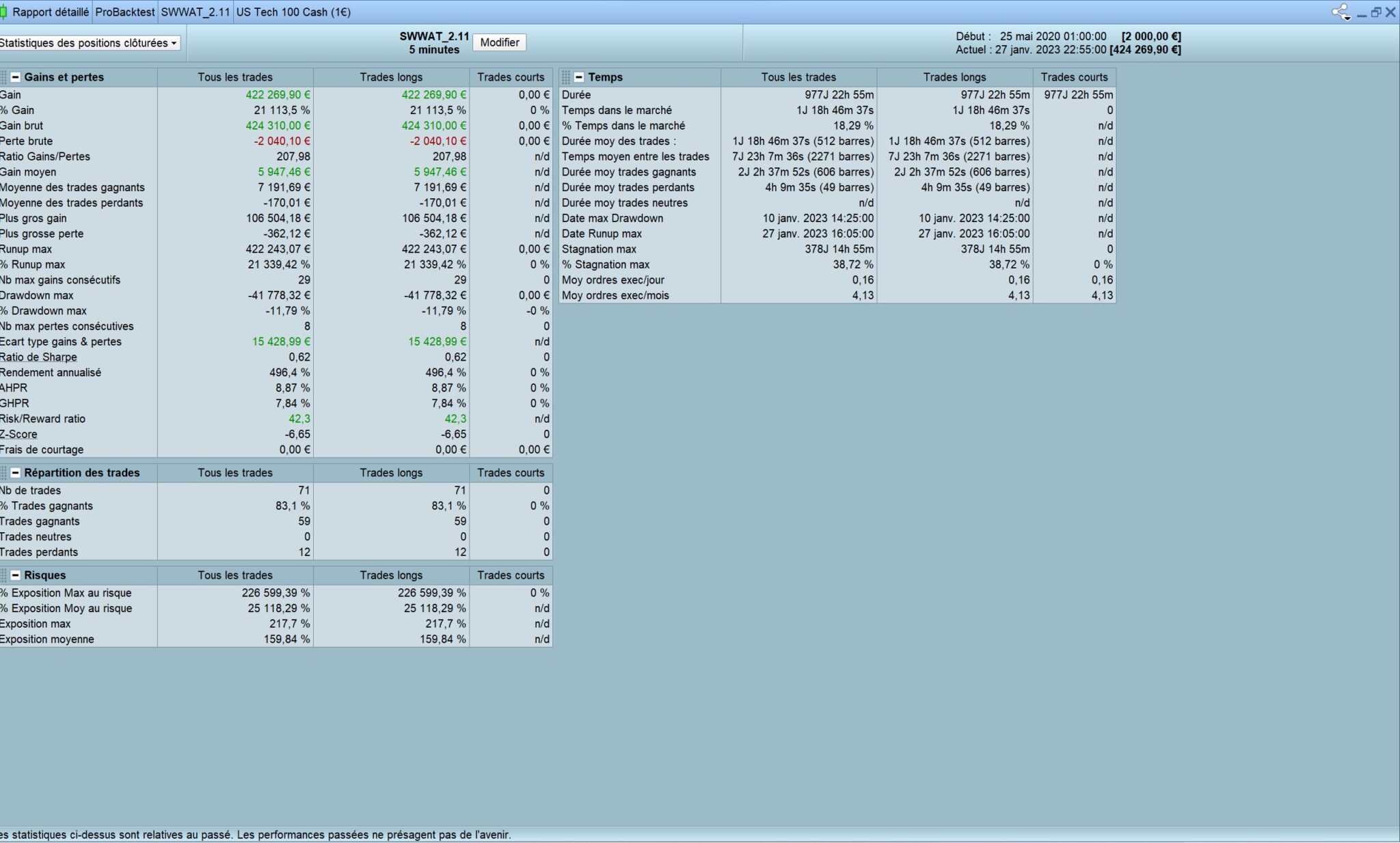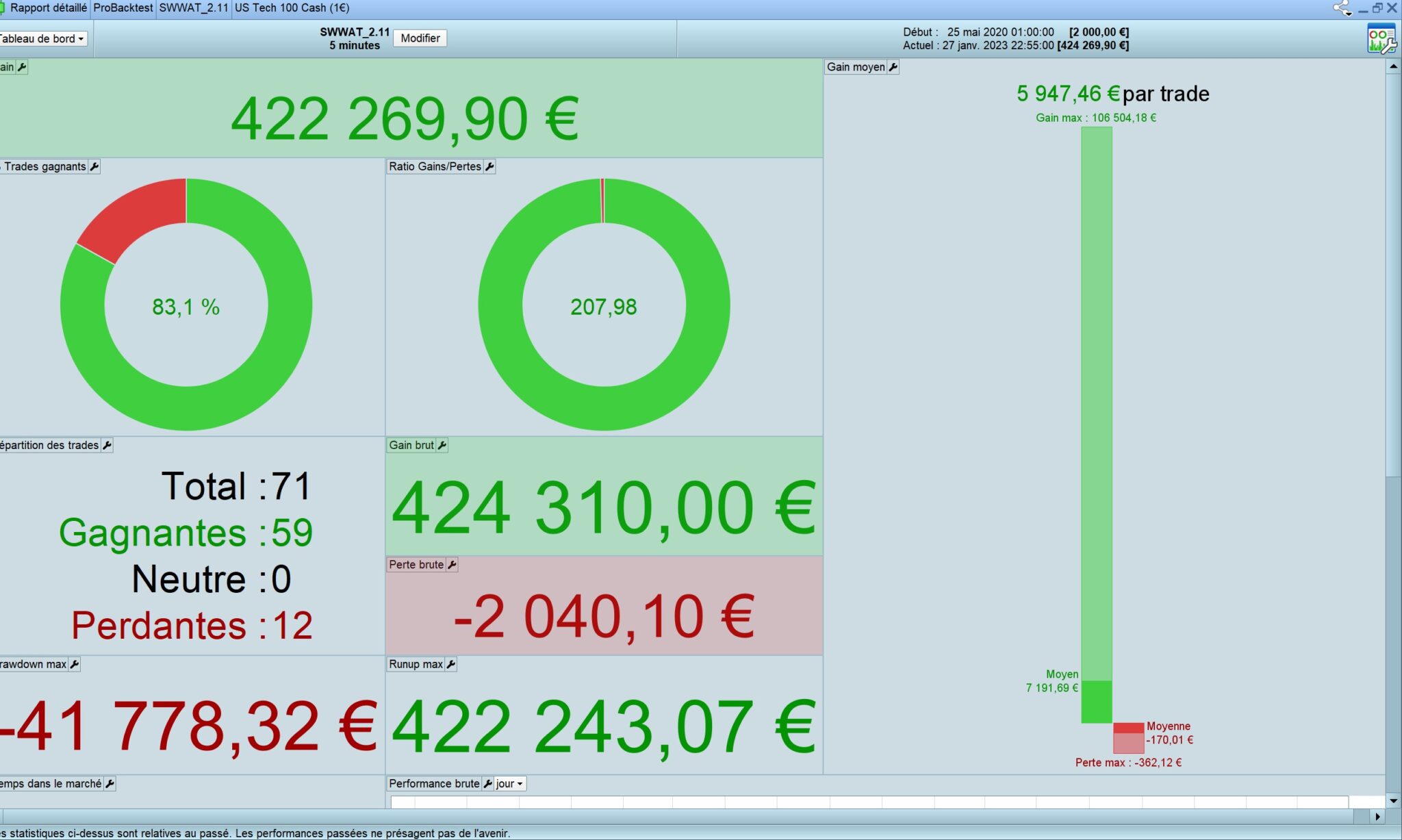 As you can see, for some trades the bot is not close from max gains. I could use MFE for trying to catch the maximum but sometimes there is big drawdowns without breaking the stoploss and then the trend resume and the last target profit is reached… So i prefer to let the winners go on instead of trying to exit the trade while going down from MFE.