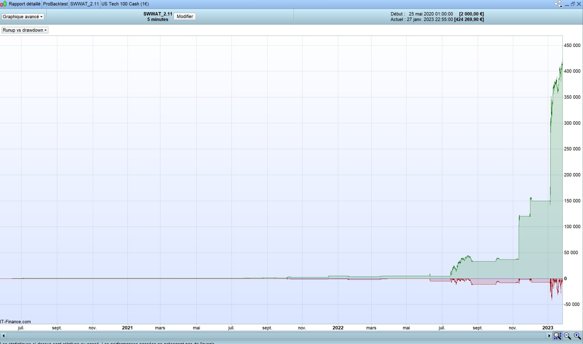 The huge drawdowns does occurs only during winning trades. You can’t loose more than the maximum risk per trade you choose in the settings.
