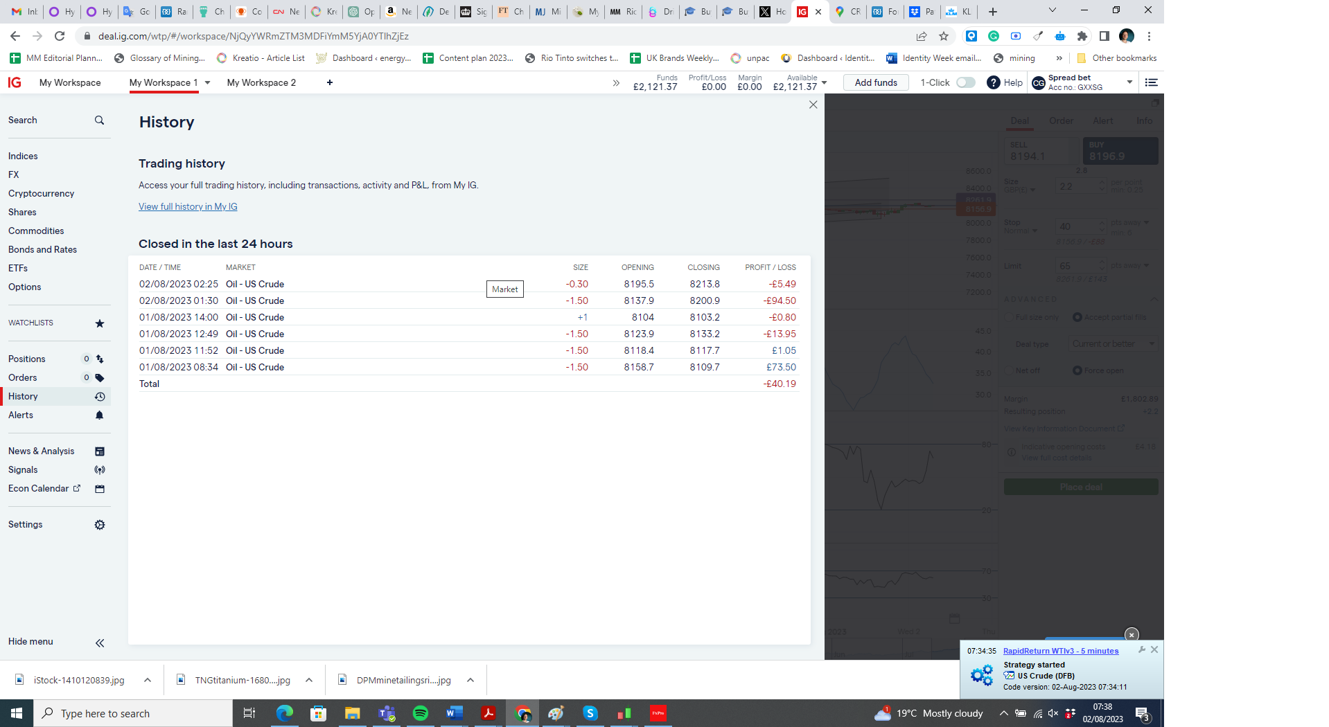 Prior to setting my strategy live it had never had such a losing streak as this – something fishy is going on on IG’s side and it isn’t just slippage. How could so many strategies that show as winning in backtesting be bankrupting all users? The coding behind their side is very opaque and for all we know, they are profiteering massively on the backs on PRT users