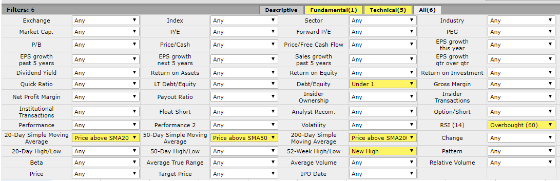Nel frattempo, ho provato a sostituire la riga 3 con : (high[0]), al posto close[0] , il risaltato è zero titoli selezionati .