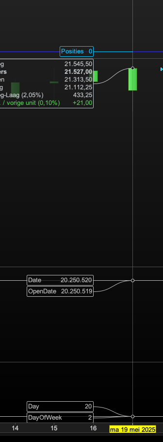 Im Bild ist das Datum der Kerze Montag, der 19. Mai 2025, aber laut den Daten in ProOrder/ProBackTest ist day=20 (müsste 19 sein)…