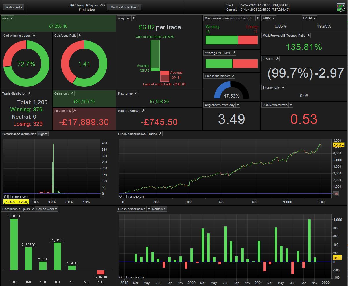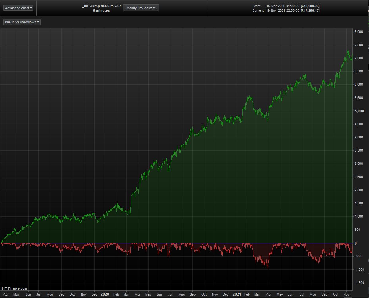 Working this on to a 15 min time frame. The 1M back test shows the downside testing lower time frame strategies on the standard 200k bars, and you don’t get to see how it performs through periods of real market stress.