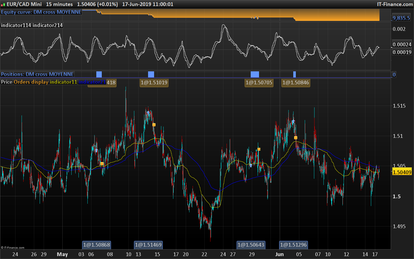 Je n’ai pas de position longue le 13/06/2019 sur EURCAD mini, TF 15min. Voir l’image que j’ai partagé dans mon dernier message. C’est pourquoi je demande à vérifier les horaires et les données du week-end de ton graphique, merci.