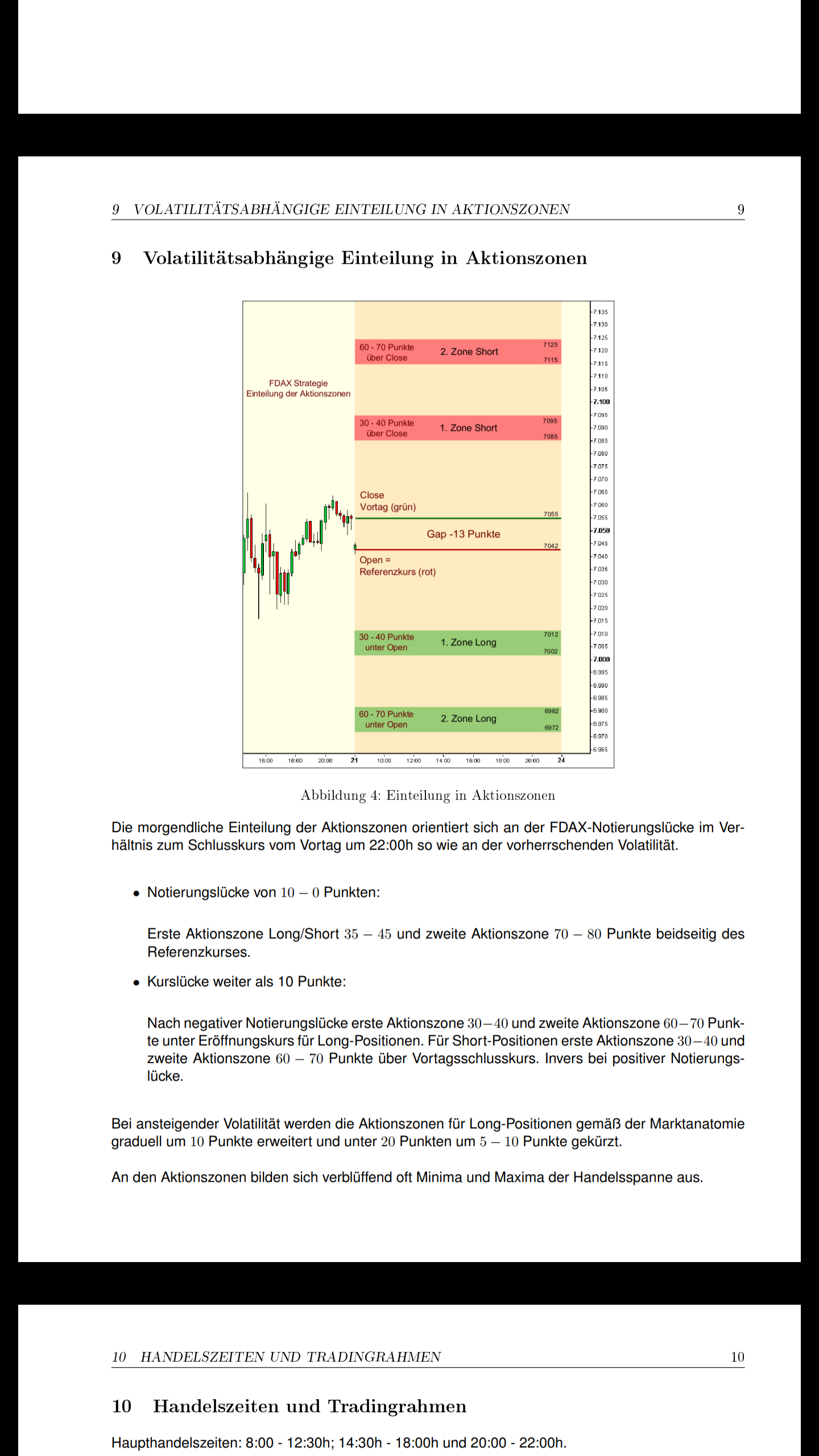 Die morgendliche Einteilung der Aktionszonen orientiert sich an der FDAX-Notierungslücke im Verhältnis zum Schlusskurs vom Vortag um 22:00h so wie an der vorherrschenden Volatilität.