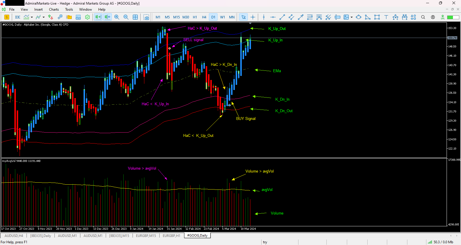 >puis aux bougies suivantes , HaC doit clôturer au-dessus de K_Dn_In avec vol > avg_Vol
