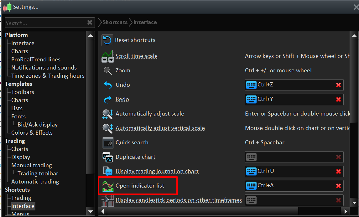 Hi, is it possible to implement a Keyboard Shortcut for Indicators & Trading Systems window? I notice it’s possible to add a shortcut to the Indicators selection screen, but I still have to click on the spanner each time. A keyboard shortcut would make it more user friendly, reducing clicks.