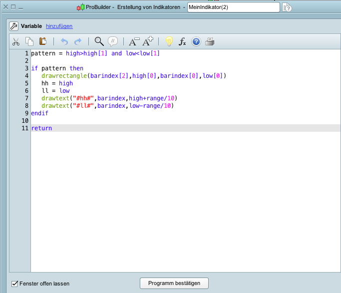 drawtext("#hh#",barindex,high+range/10)