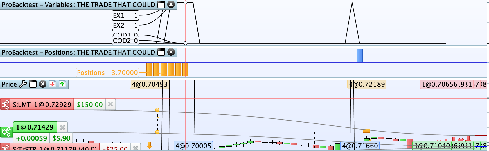 Context is that I have multiple entry and exit indicators and I would like to see how they interact with each other. It would be good to see which pieces of code trigger an entry or exit in the market if we’re able to label them when using ProBacktest.