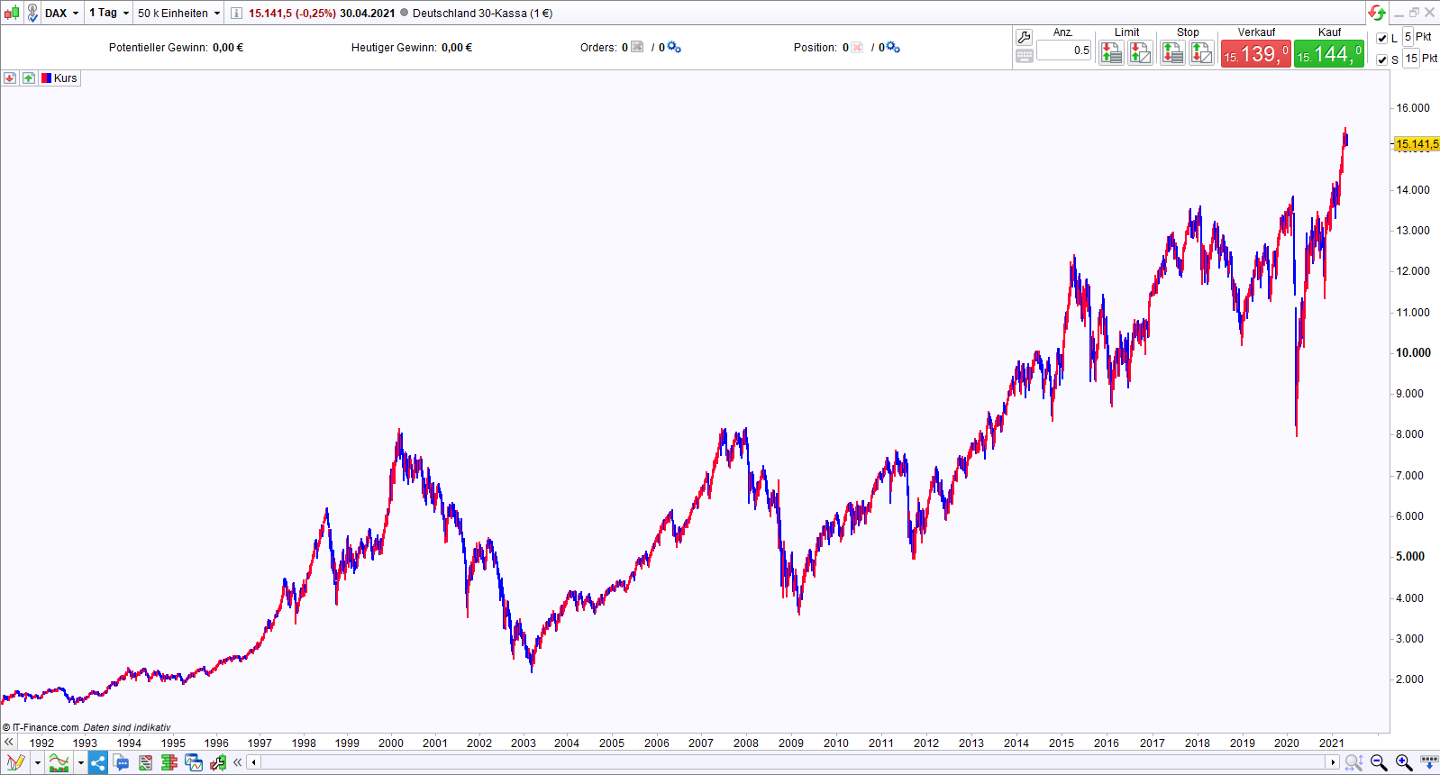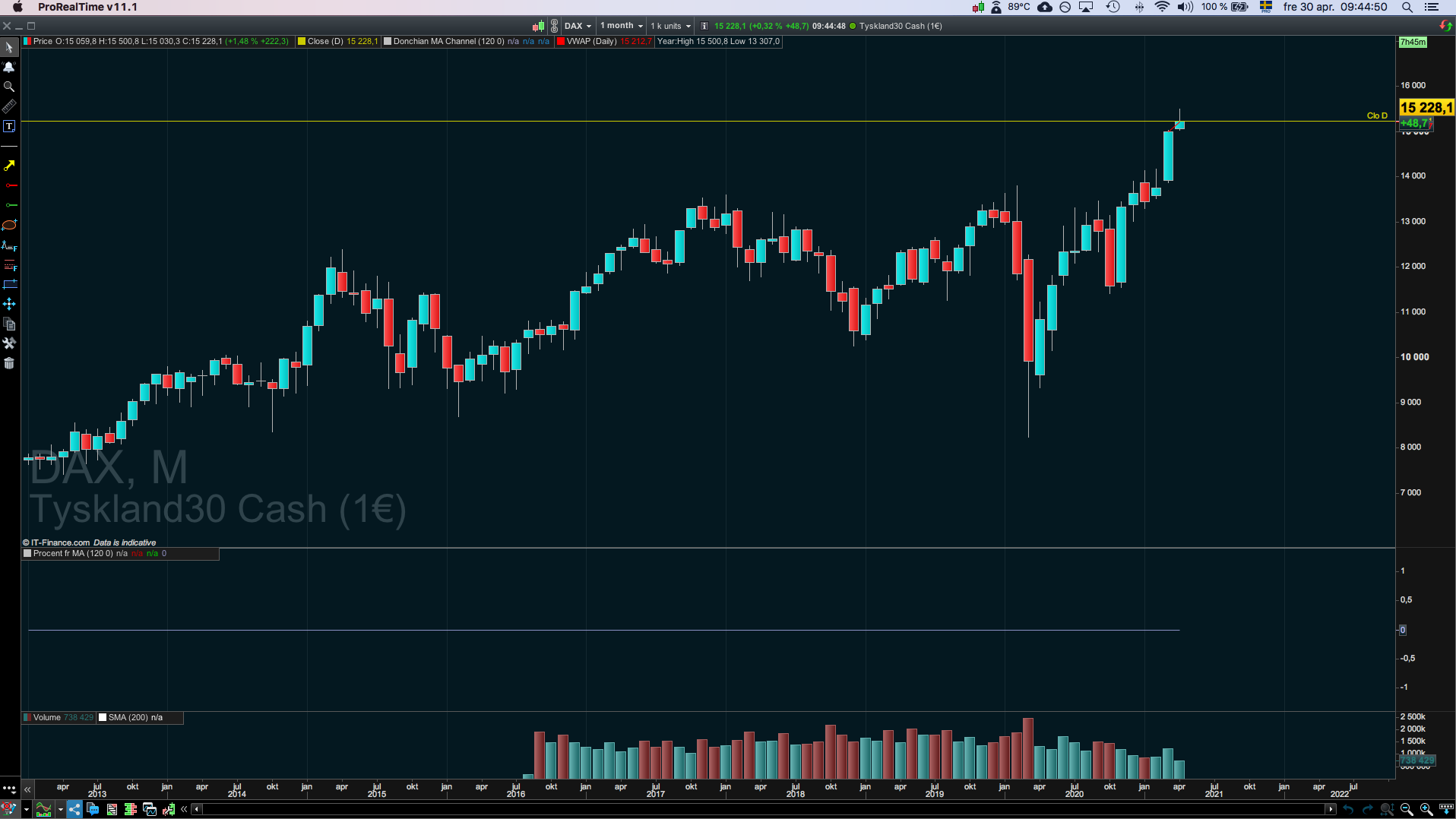 That’s odd. Here is what I get for a DAX cash market daily chart, back to 1991. Futures don’t go back that far, usually.