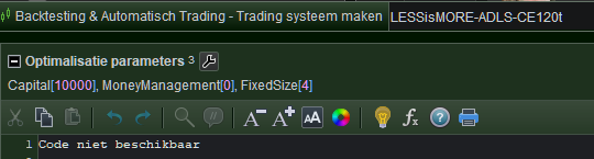 - Use something like 4 contracts and give way for some DD (change the available portfolio from 3000 to 10000 or so – do this in both the Parameters and the Editor).