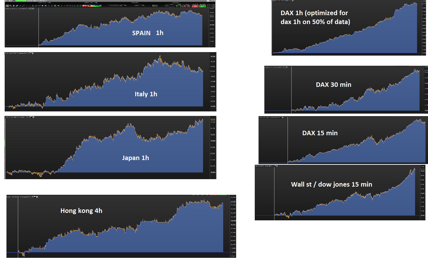 As i said, all the EQ curves in the photo is the EXACT SAME algo optimized for 1h dax.