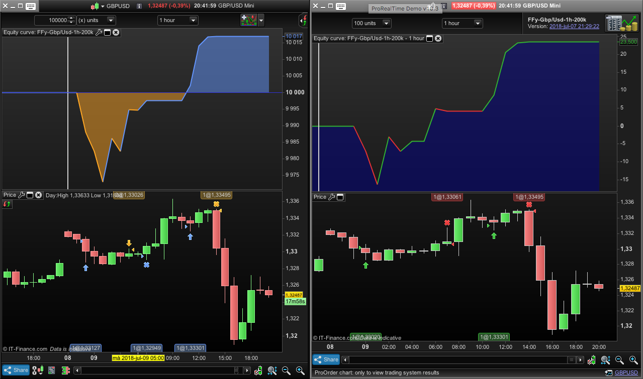 I´m trying to use som limit orders in my automatic systems but it dosen´t seem to work as it should. If you look at my picture something is clearly not right… On the left is the backtest tested with tbt. On the right side is live trading (demo account, it that matters).