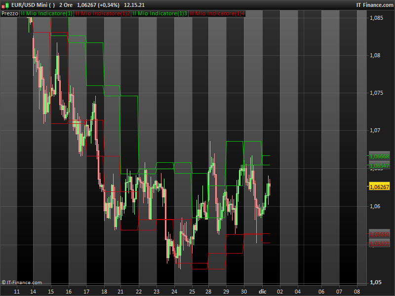 allego due immagini dell’indicatore creato su prorealtime versione 10.3, una è l’indicatore su grafico DAILY (che traccia i massimi e minimi delle candele DAILY.