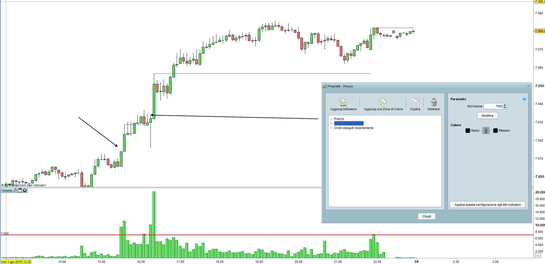 nasdaq 5min >7000, vorrei poter inserire io il valore di volume (magari mettendo 0 di default così non disegna nulla) in modo da cambiarlo poi in base al tf e allo strumento.