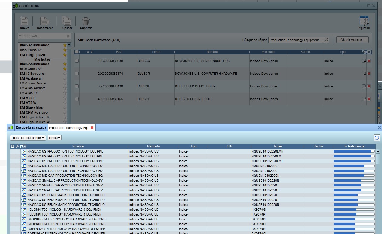 - Several list with the name of each super-sector that will includes its internal sectors
