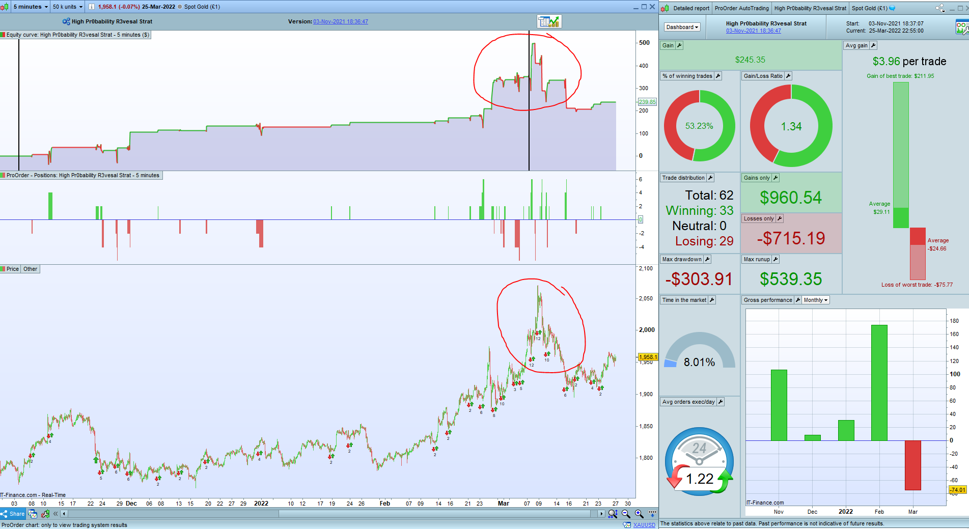After today seeing the High Probability Reversal strategy giving back the exceptional gains for March it might be time I start looking into adding this logic to the strategy. Overall the performance remains excellent so this will just be another potential enhancement to the strategy going forward. I will do some tests over the next few days and if satisfied with the results anounce the date of a possible update.
