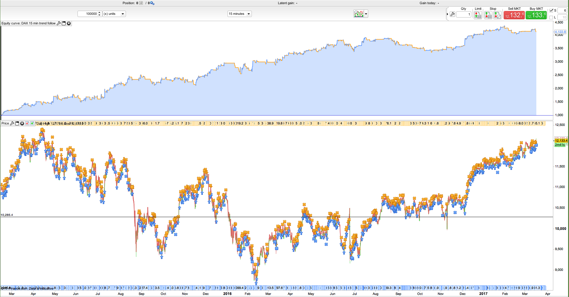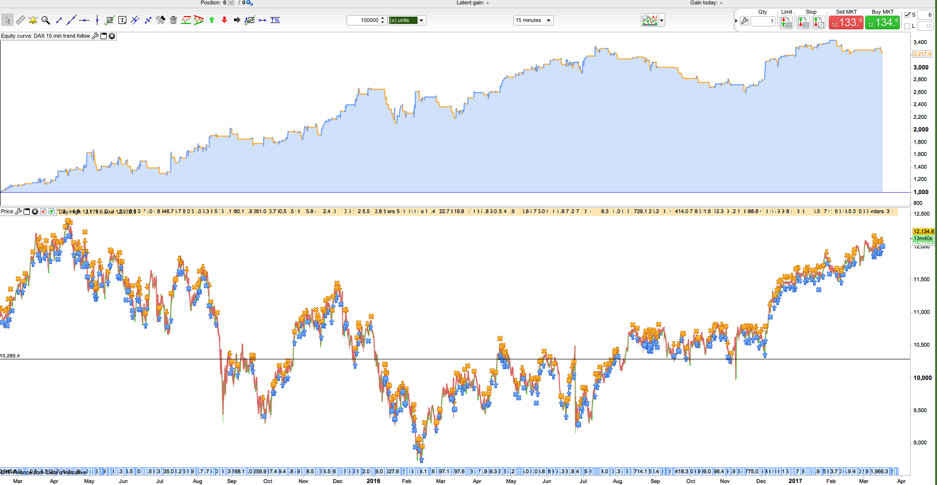 The basic idea behind the system is to jump on short term trends in the market. However I have not yet found an efficient way to filter out periods when the market is not moving in any direction. I anyone have an idea on how to do I would be very happy to know more about it.