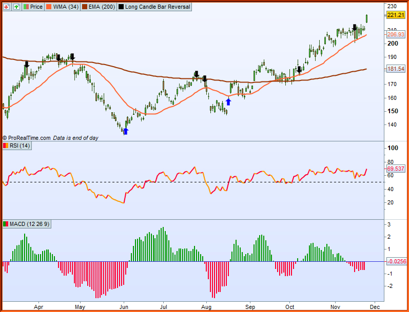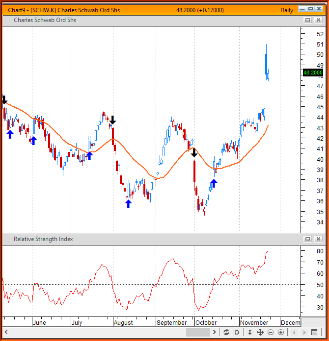 I am trying to get an alert by having arrows highlighted on the chart indicating a reversal with a long bar using the RSI(14) indicator.