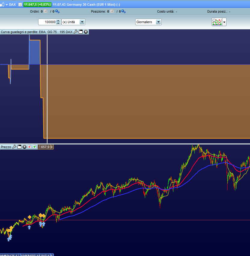 HI GUYS, I DID NOT BACKTEST ABOUT STRATEGY, JUST I FOUND THE RIGHT SETTING ABOUT PRINCIPAL TREND WITH THE CROSSES OF 2 EMA (75 AND 195) (NOT GREEN AND RED ) THEN I WONTED ANOTHER MOVING AVERAGE FOR TO GO ONLY SHORT WHEN PRINCIPAL TREND WAS DOWN AND GO LONG WHEN PRINCIPAL TREND WAS UP.